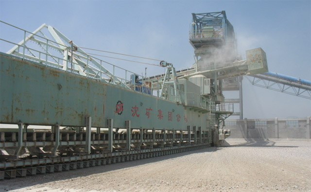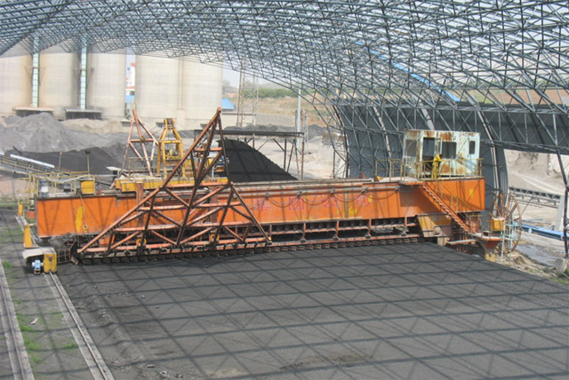 圓形場堆取料機、長形場堆取料機電控系統 例:YDQ900/90圓形場堆取料機(堆料能力:900t/h;取料機軌道直徑:90M)控制方式:本機設有中 控室自動控制、機上自動控制及手動控制、現場機旁控制四種方式,控制方式的選擇開關設置在控制室內的操作盤上。 自動控制:在自動控制方式下的堆、取料作業由中控室和機上控制室均可實施。當需要機上控制室對堆取料機自動控制時,操作人員只要把操作臺上的自動操作按鈕按下,然后按下啟動按鈕,堆、取料機上所有的用電設備將按照預定的和程序啟動,整機操作投入正常自動運行狀態。在中控室的操作臺計算機上通過鼠標按下啟動按鈕對堆取料機實現整機系統的啟動或停車。 機上手動控制:適用于調試過程中所需要的工況和自動控制出現故障,要求堆取料機繼續工作,允許按非規定的堆料方式堆料和取料作業工程。 現場機旁控制:適用安裝檢修和維護工況時需要的局部動作,依靠機旁設置的操作按鈕來實現,各傳動機構解鎖互鎖,只能單獨啟/停控制。 開車、停車順序: A、堆料機:開車前先發出起車音響信號--堆料機的回轉和變幅啟動—堆料皮帶機啟動—來料棧橋皮帶啟動 停車順序相反過程。 B、取料機:開車前先發出起車音響信號--啟動出料膠帶機—刮板鏈系統啟動—料粑驅動系統啟動—取料機行走機構啟動 停車順序相反過程